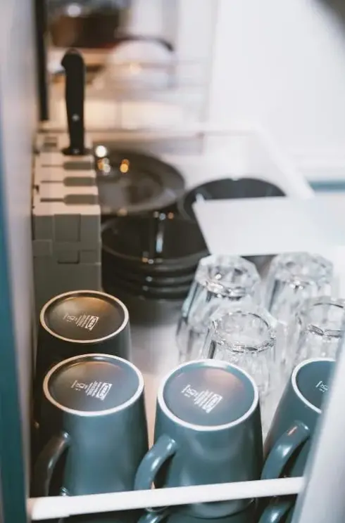 All plates, cutlery, glasses, and other tableware sanitized